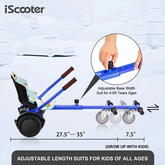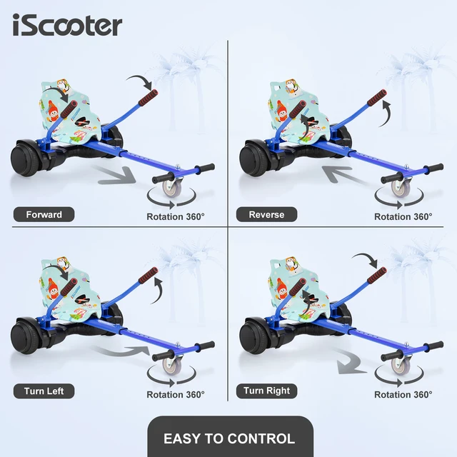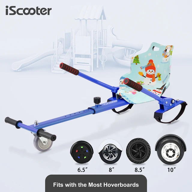Suit For Almost Hoverboards – The most fun hoverboard go kart has come. Convert your hoverboard Into a safe hoverboards go karts, which is suitable for a 6.5'' 8'' 8.5'' 10'' hoverboard. There are many options for your hoverboard which can improve your transport or just fun. iScooter is the ultimate hoverboard seat attachment for your ride.